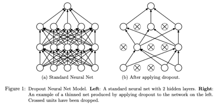 ニューラルネットワークにおいて重み更新の際にランダムで枝を無効化することで過学習を抑える手法。