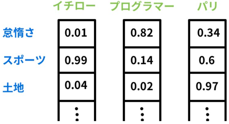 fastTextの単語のベクトル化は、文章を構成する単語を複数の特徴に対する関連の度合いを0〜1の間の実数で表現するものである。したがって、基になる文章の量が多く、取り扱う分野が多くとも、このベクトルは高次元でも256次元以上、つまり特徴の項目数が256個以上程度となる。fastTextはディープラーニングを用いてテキストデータからベクトル化されたモデルを獲得する。