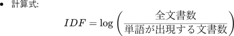 特定の単語が、全体の文書群の中でどれだけ希少であるかを測る指標です。