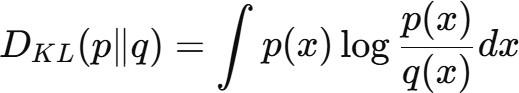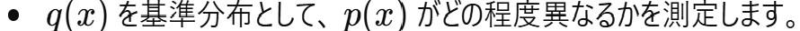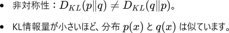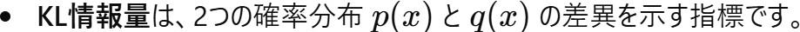 ・真の分布 p(x) と近似分布q(x) を用いて計算されますが、KL情報量とは異なります。